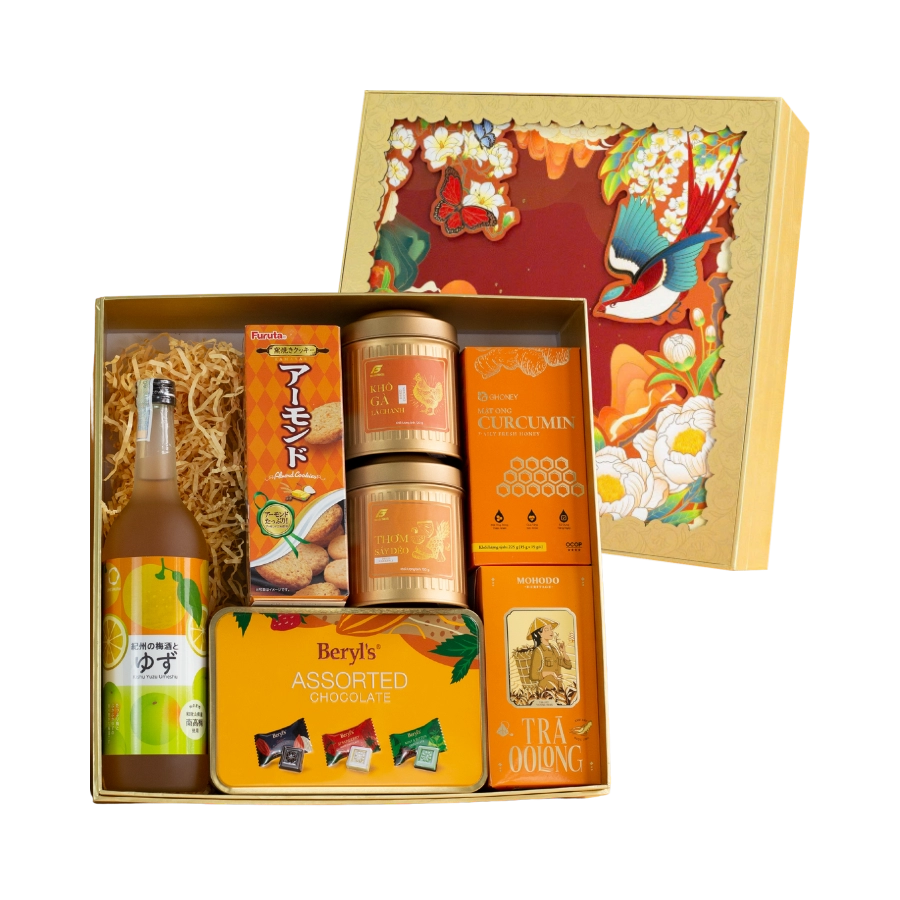 Để làm phong phú thêm trải nghiệm, set quà Nghênh Sắc 6 còn có nhiều món kèm theo đáng chú ý. Các món này đều hướng đến chất lượng và sức khỏe, bao gồm Mật Ong Nghệ Curcumin Daily Fresh Honey giúp bảo vệ dạ dày, và Trà Oolong Sâm Dây Ngọc Linh thanh tao. Ngoài ra, set còn có các món tráng miệng nhập khẩu như Socola Beryl's Snow Flower Assorted và Bánh Quy Furuta Hạnh Nhân Nhật Bản.