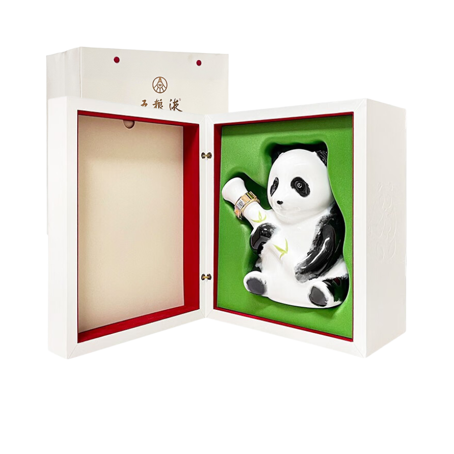 Chai gấu trúc được đặt trong một chiếc hộp sang trọng, thường là màu trắng hoặc màu kem, với họa tiết đơn giản nhưng nổi bật để làm nổi bật chú gấu trúc bên trong. Thiết kế này nhấn mạnh sự quý hiếm, độc quyền và phù hợp làm quà tặng cao cấp. Thiết kế kết hợp hoàn hảo giữa chất lượng rượu thượng hạng của Ngũ Lương Dịch với sự đáng yêu và độc đáo của hình ảnh Gấu Trúc, biến đây thành món đồ sưu tầm được săn đón.
