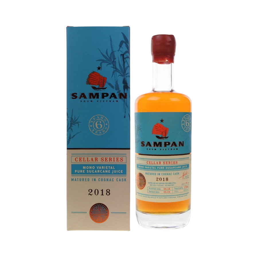 Rượu Rhum Việt Nam Sampan 6 Year Old Cellar Series ex Cognac Cask là một chai Dark Rhum đặc biệt đến từ thương hiệu thủ công Sampan của Việt Nam. Phiên bản giới hạn này là kết quả của việc chưng cất 100% nước mía tươi nguyên chất theo phong cách Rhum Nông nghiệp (Agricole). Rượu được ủ ròng rã 6 năm ngay trong điều kiện khí hậu nhiệt đới độc đáo tại miền Trung. Đây là một sản phẩm chất lượng, cho thấy sự phát triển mạnh mẽ của rượu mạnh Việt Nam trên bản đồ thế giới.