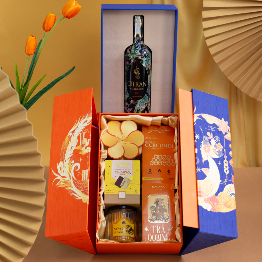 Rượu Vang Đỏ Pháp Citran Bordeaux Superieur 2022 Limited Edition Hộp Quà Tết 2026 Set Lộc Khổng Tước 2
