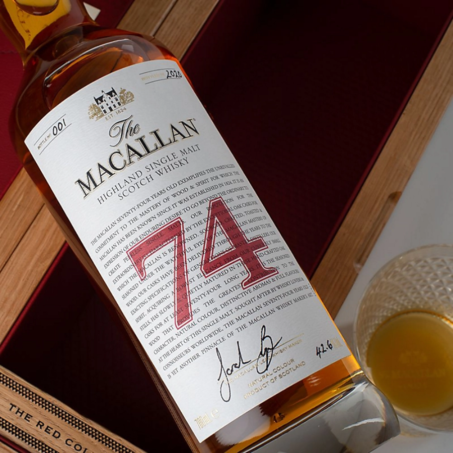 Macallan 74 Year Old: tỏa hương trái cây khô, cam quýt và gừng ấm áp.